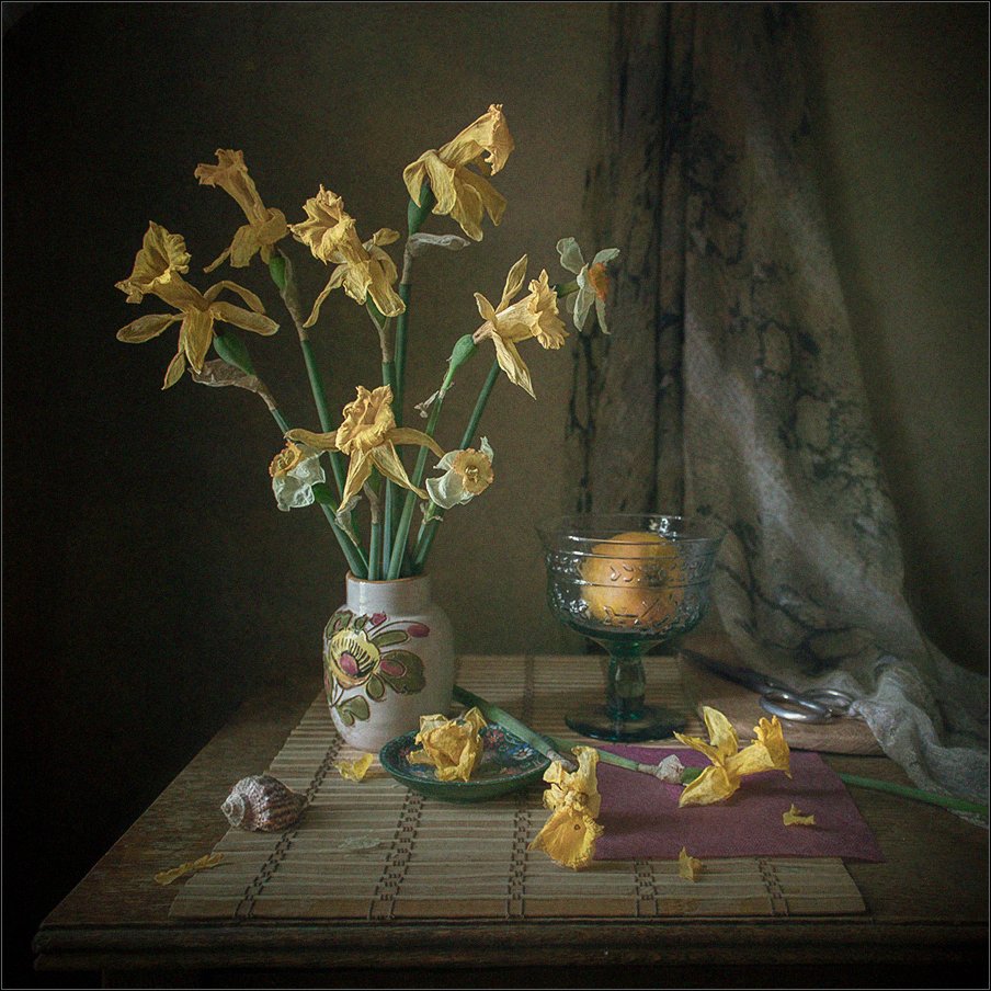 Интересный триптих получился: Юные нарциссы почти одинаковы, потом, в зрелых цветках начинает проявляться их индивидуальность, в увядших- угадываешь их характер.Здорово получилось!