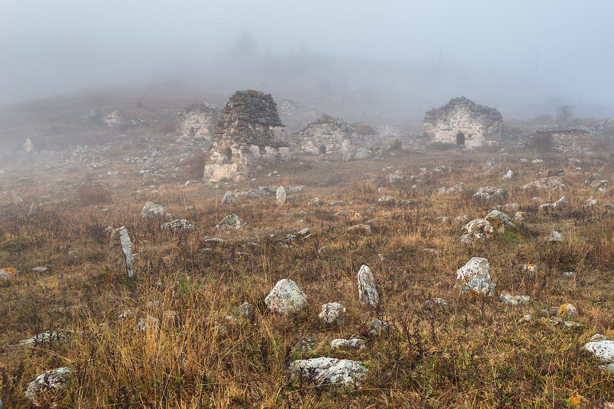 Кладбище вблизи села Лесгор, Северная Осетия. На фото семейные склепы, в которых хоронили людей.