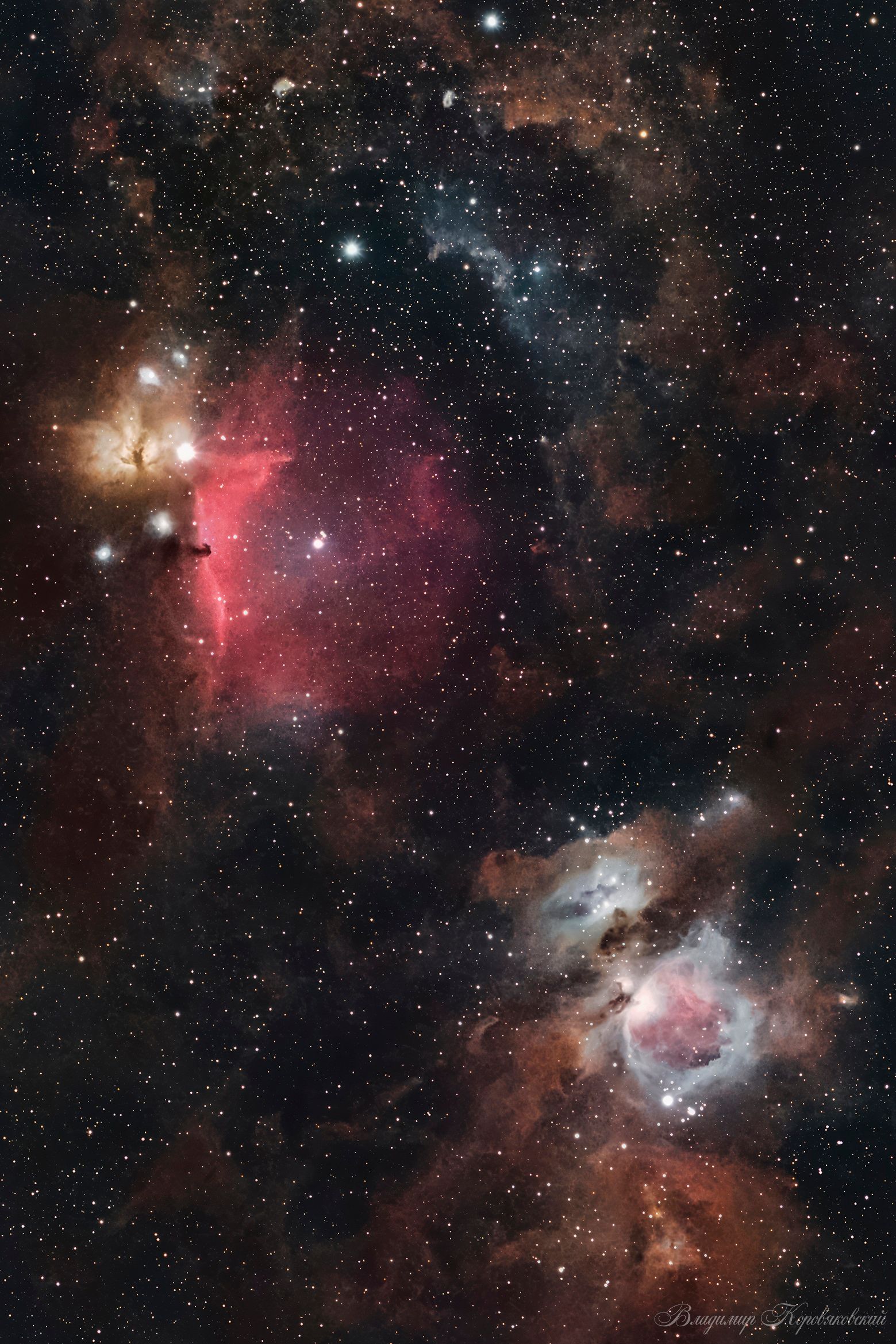 Туманность Ориона — мощная, с яркими контрастами и глубиной. Красный газ, звёздные скопления, тёмные пылевые просечки — всё выглядит естественно и насыщенно. 👁️🌌