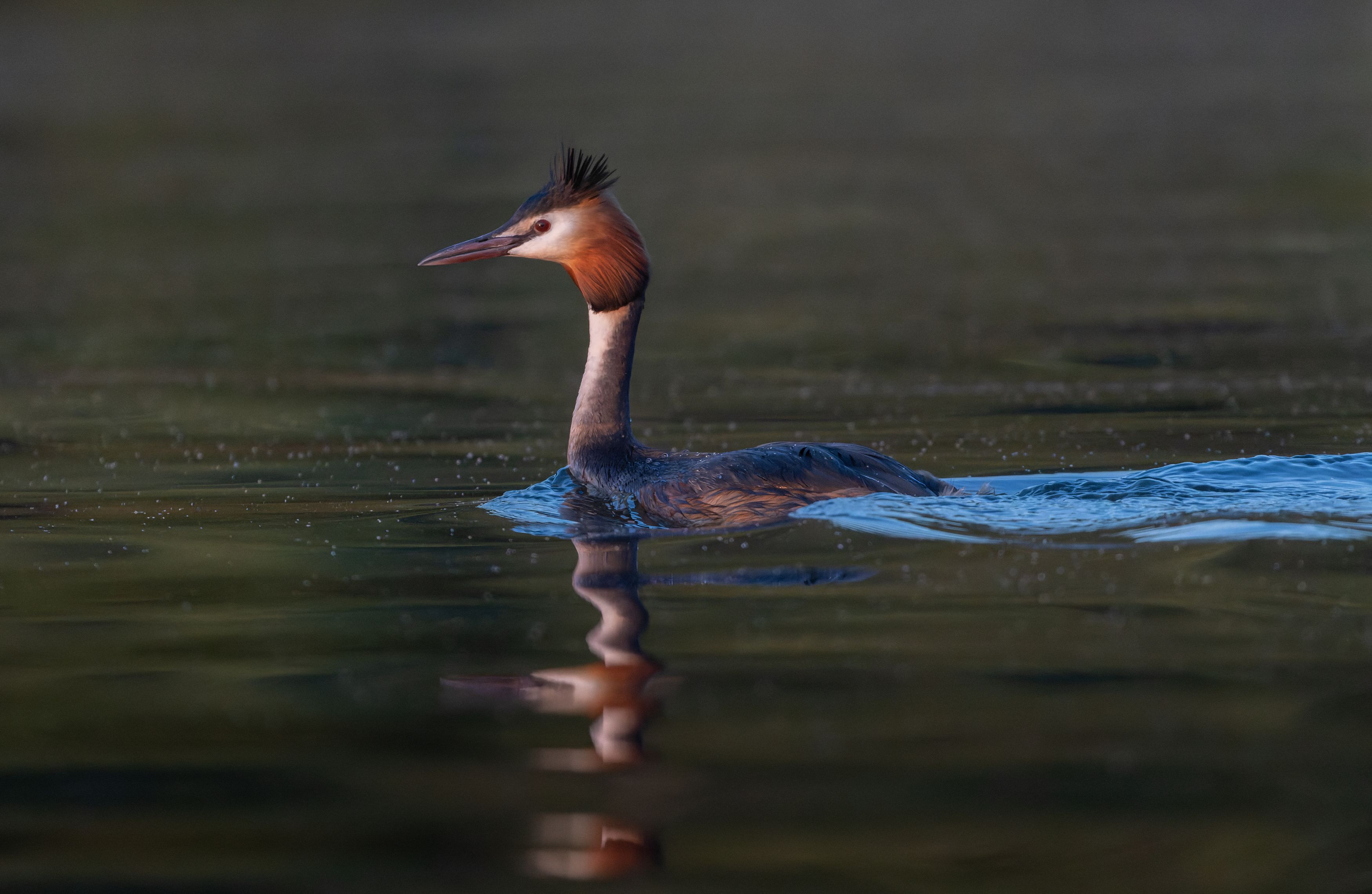 птица, чомга, поганка, вода, озеро, вечер, Светлана Холодняк