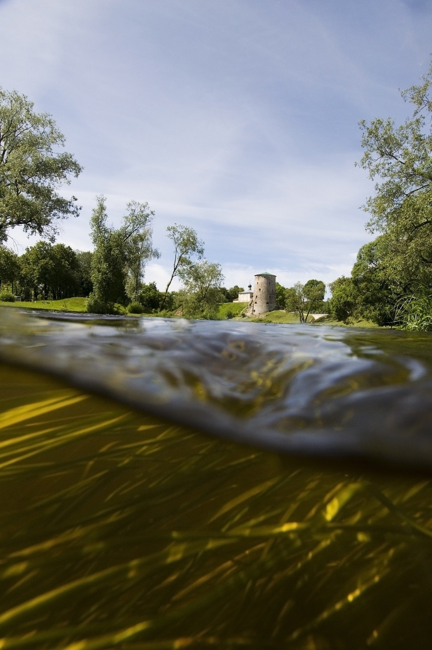 псков, гремячая башня, река пскова, пейзаж, подводная съёмка., Юрий Яковлев