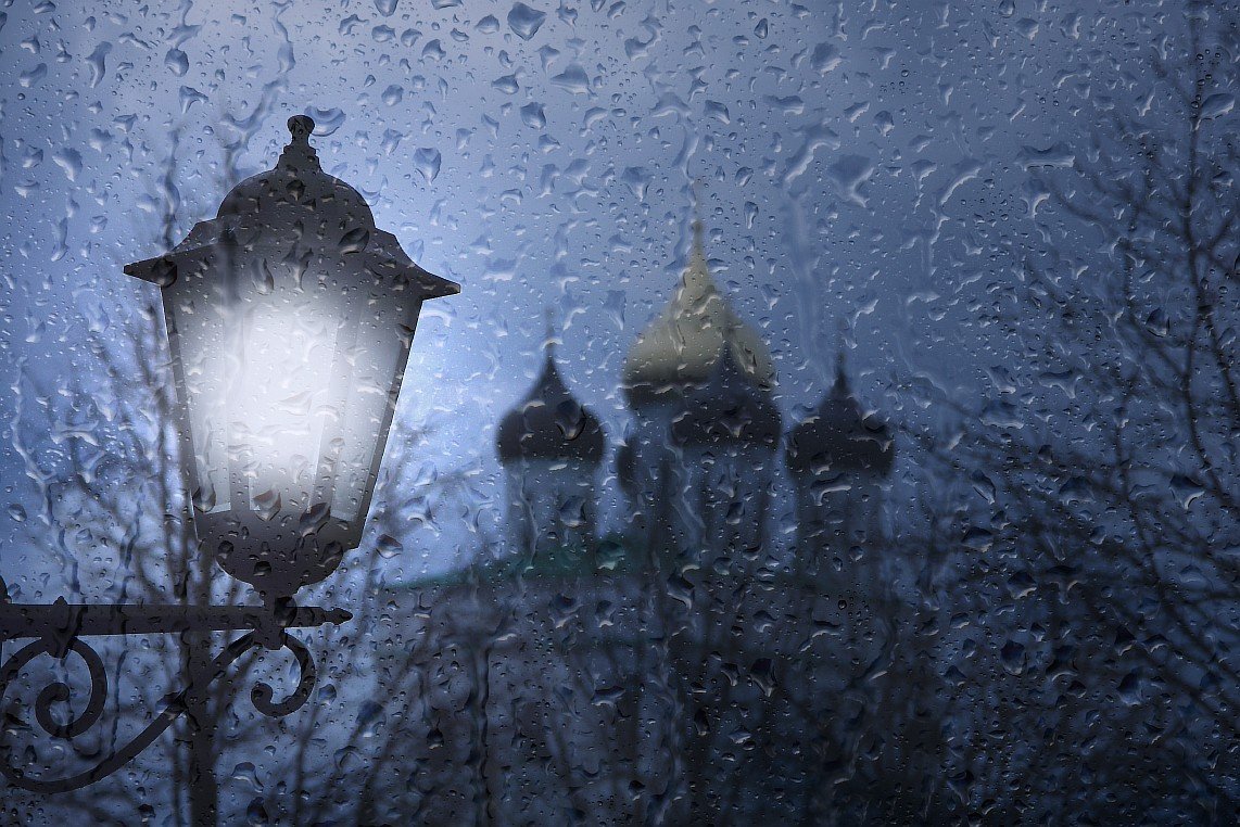 псков, троицкий собор,дождь, капли, стекло, фонарь, свет, город,, Юрий Яковлев
