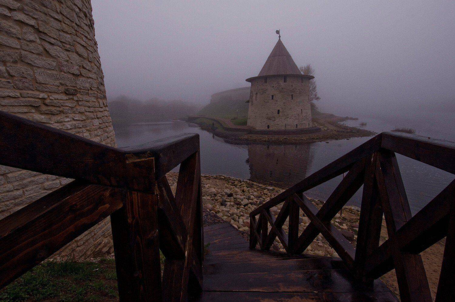 городпсковтуманкрепостные стенынабережнаярекагородской пейзаж