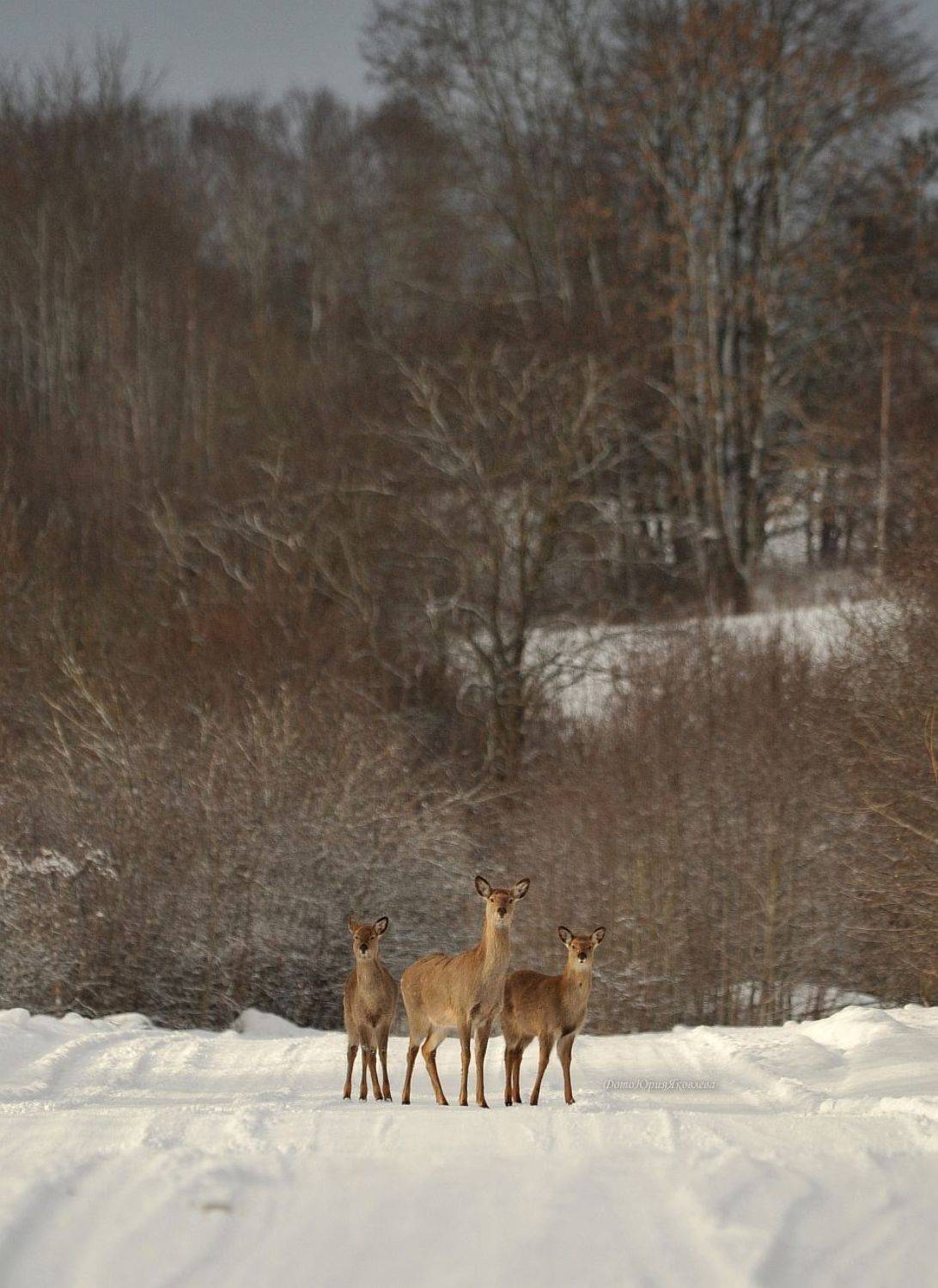 зима.день.россия.псковская область. животные.олени.природа.