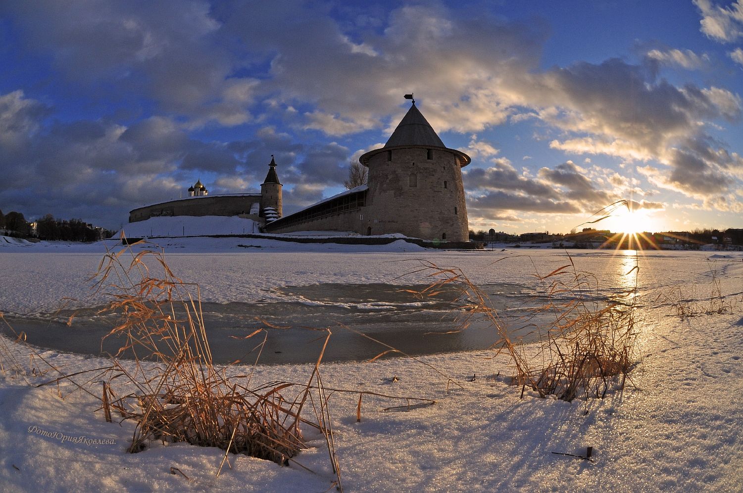 россия.псков.город.весна.вечер.солнце.башня.собор., Юрий Яковлев