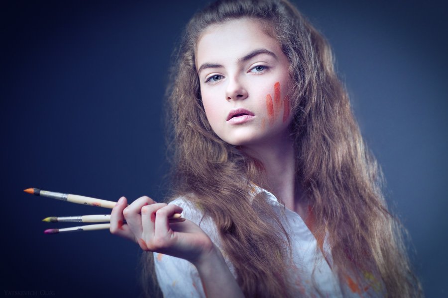 портрет, девушка, студия, анастасия, кисти, краски, Олег Яцкевич