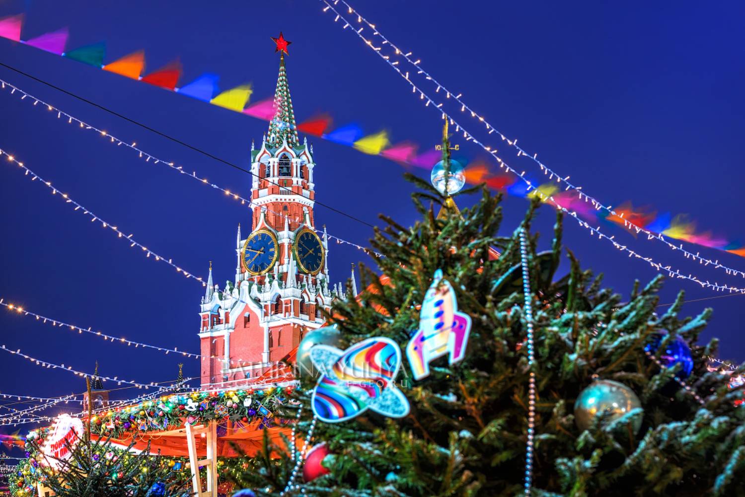 Новый год и Спасская башня в Кремле
