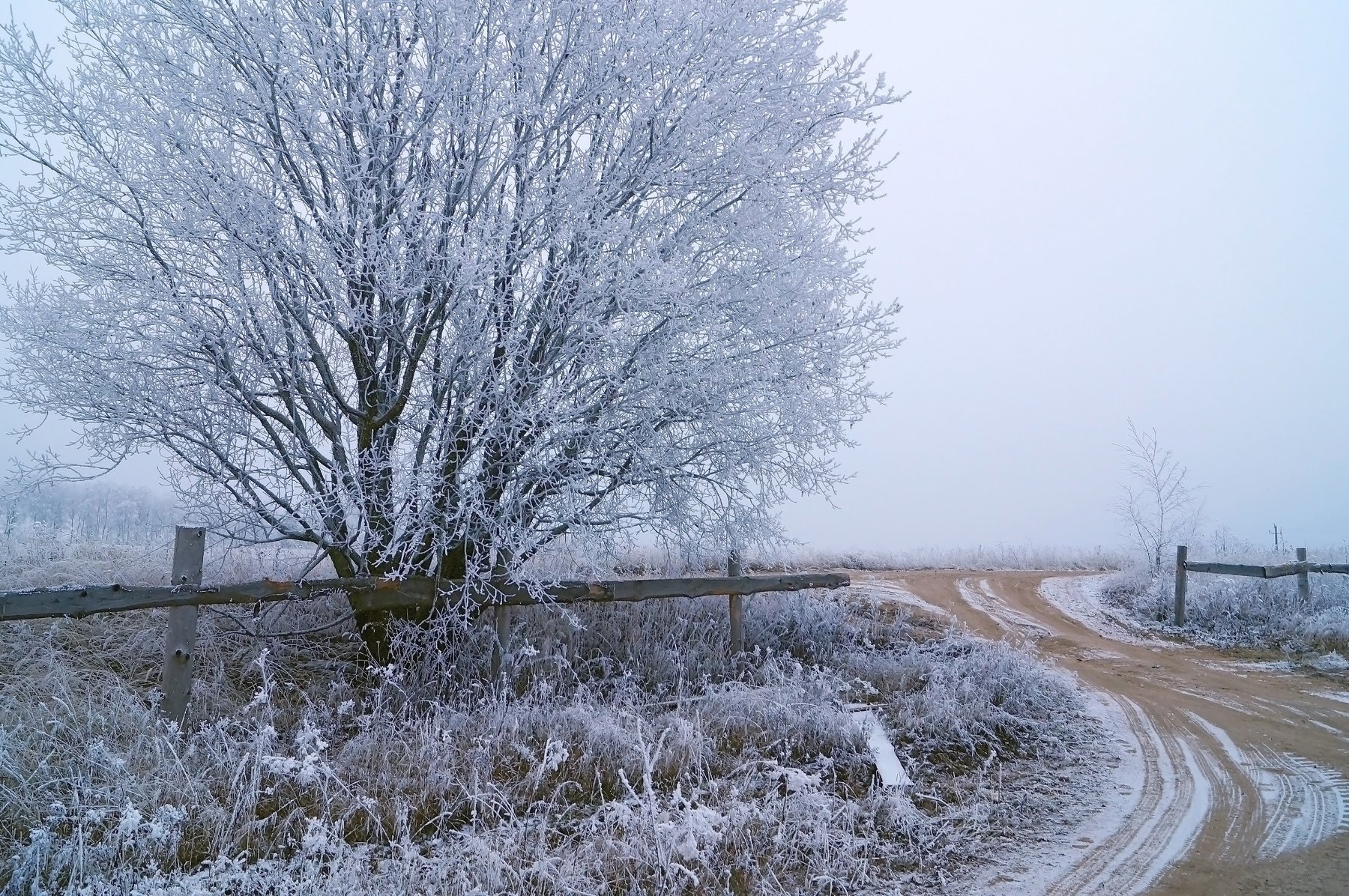 декабрь, дорога, зима, иней, красота, пейзаж, природа, россия,зимний пейзаж,дорога,поворот,снег,русская зима, Юлия Лаптева