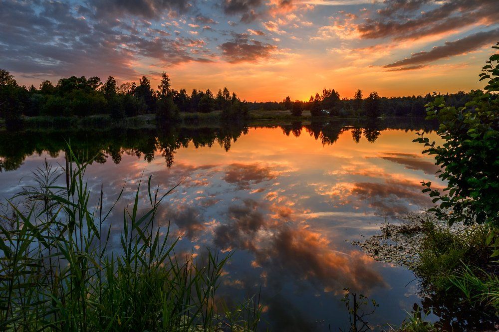 Август, Вечер, Закат, Красота, Лето, Небо, Облака, Отражение, Пейзаж, Природа, Река, Россия, Юлия Лаптева