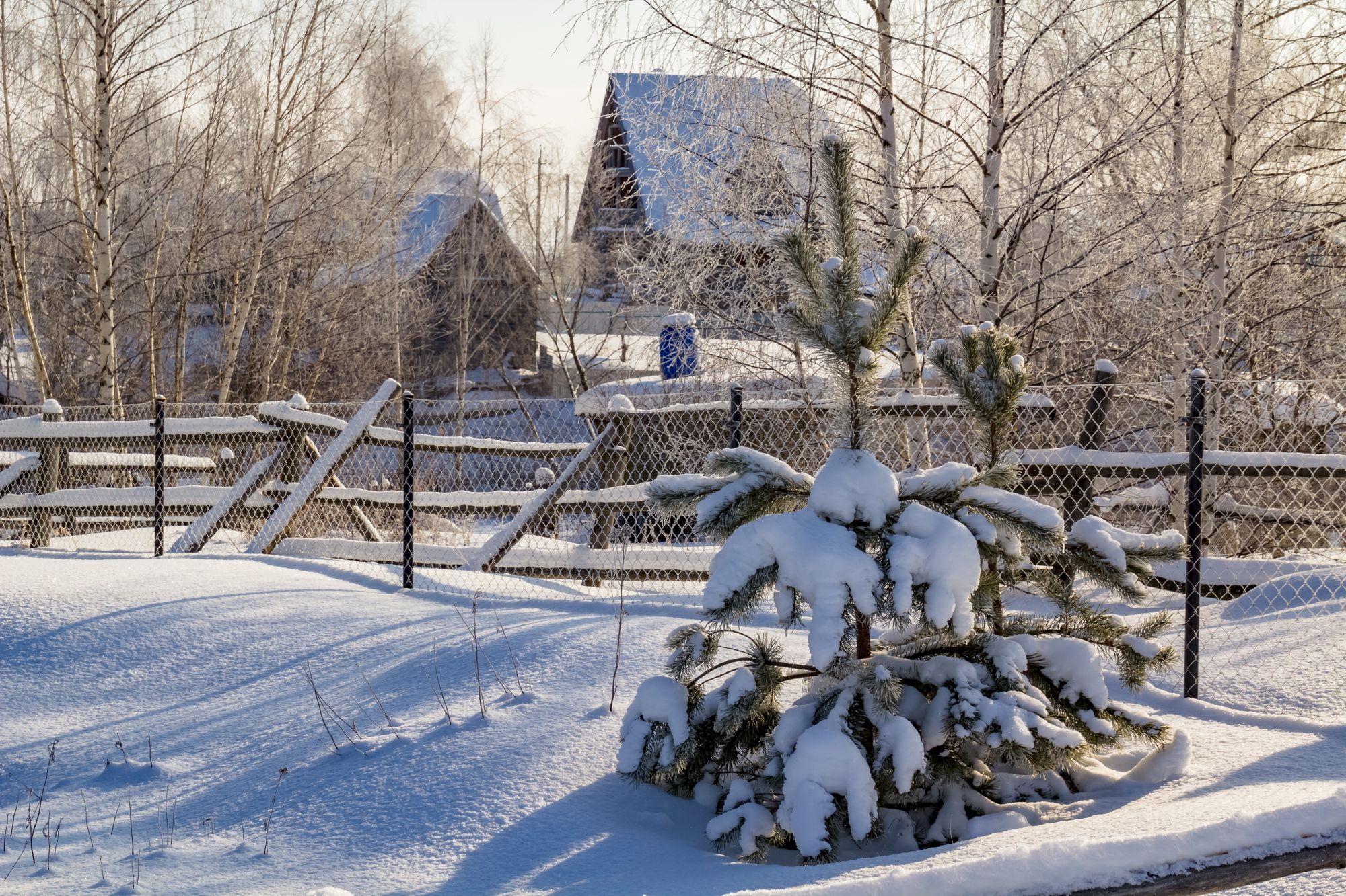 утро, зима, снег, забор, селение, пейзаж, Юрий Морозов