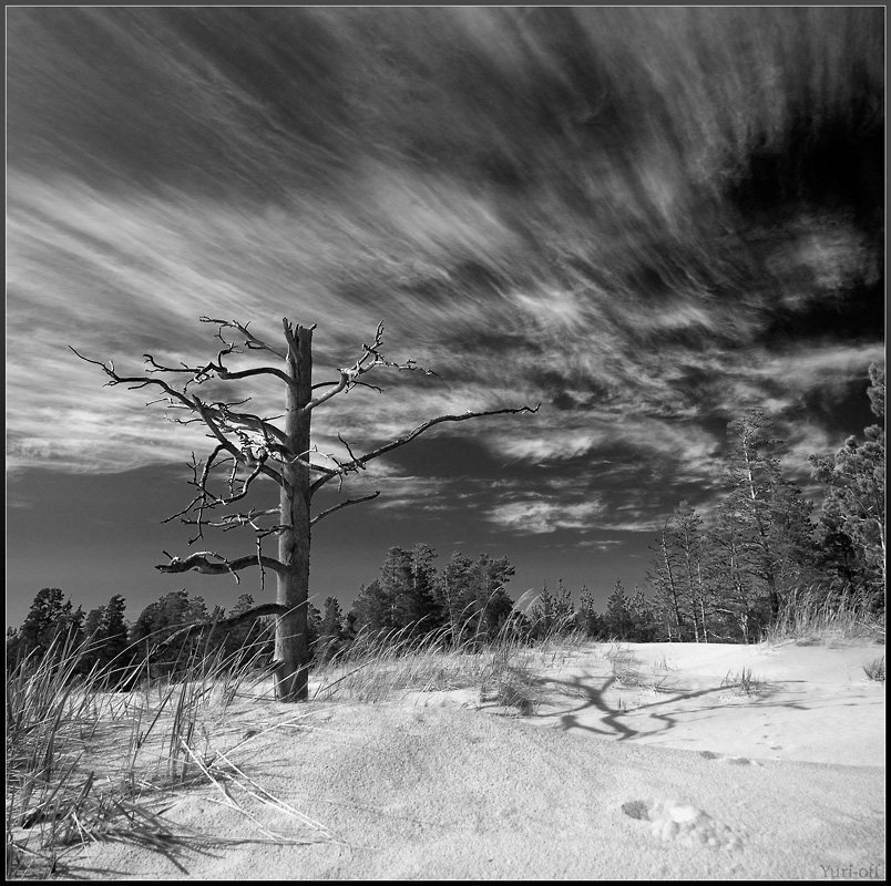 Никто не разгадает тайну воздействия на человека тонко летящих облаков, сухого дерева.......Почему это эмоционально задевает?......Может, потому что это увидел фотограф)))))