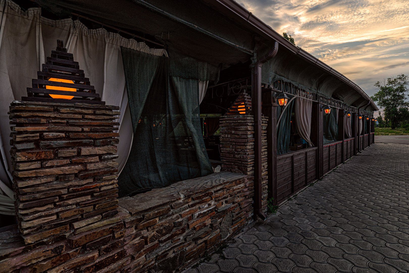 кафе, вечер, фонари, занавеси, камень, плитка, Юрий Диденко