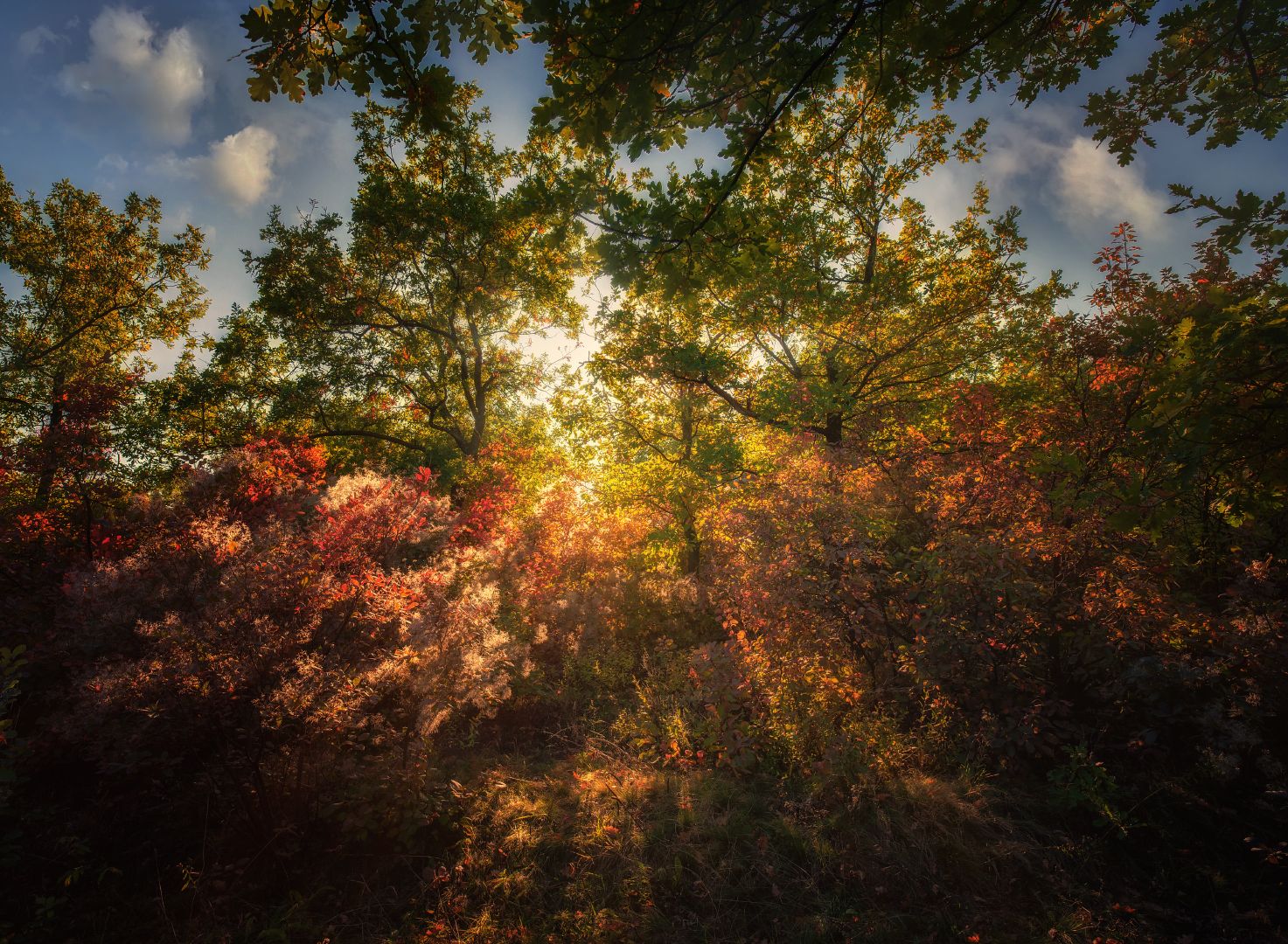осень, пейзаж, свет, тень, деревья, кусты, Юрий Диденко