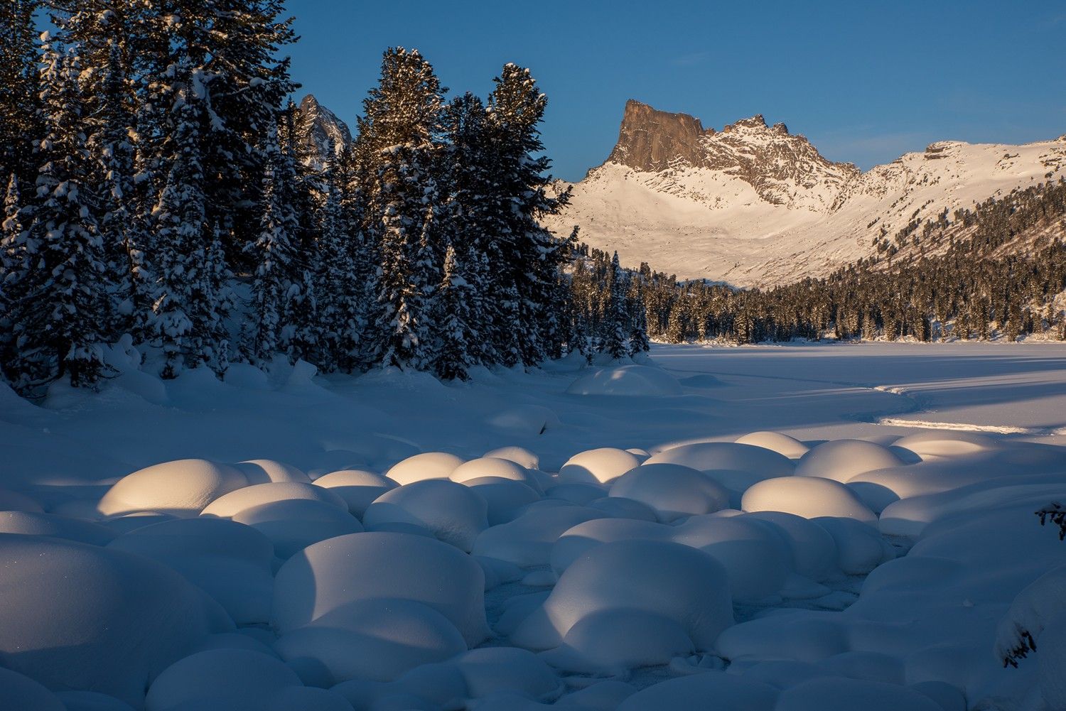 На Ергаках зимой очень много красивого. Добраться очень сложно - только на широких лыжах.