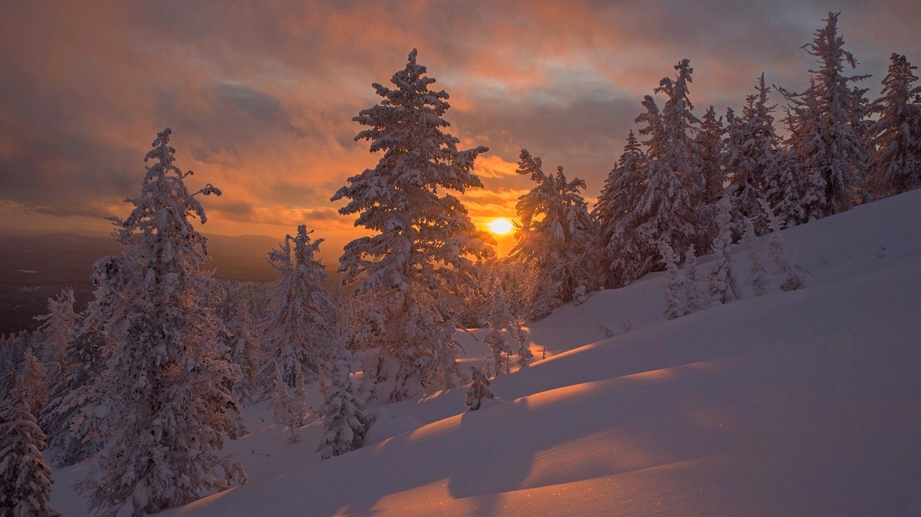 аргиджек, зима, закат, лес, снег, Юрий Мальцев