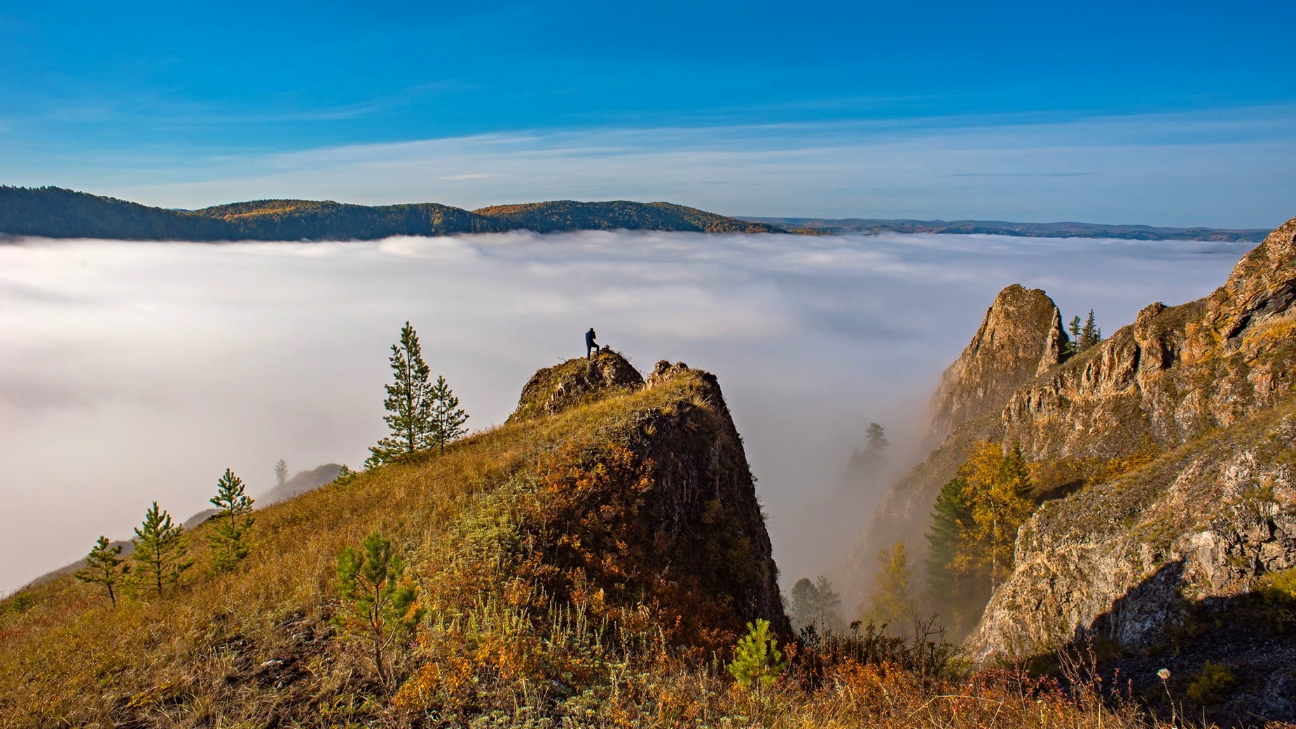 мана, красноярск, утро, восход, туман, краски, осень, горы, тайга, золото, долина, скалы, утесы, Мальцев Юрий