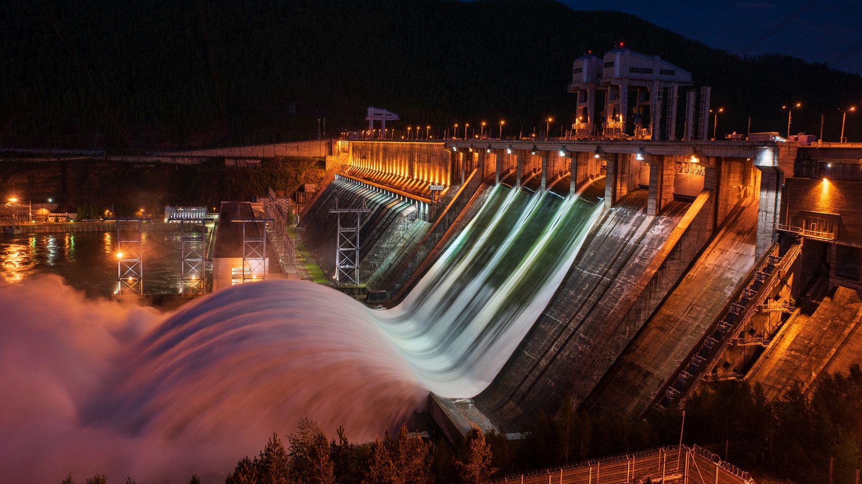 ГЭС Красноярская Красноярск сброс воды ночь вечер паводок Енисей, Юрий Мальцев