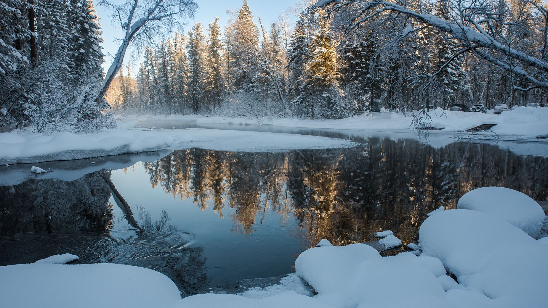 Поэтому есть только пара утренних часов чтобы успеть снять снег на деревьях во всём великолепии.