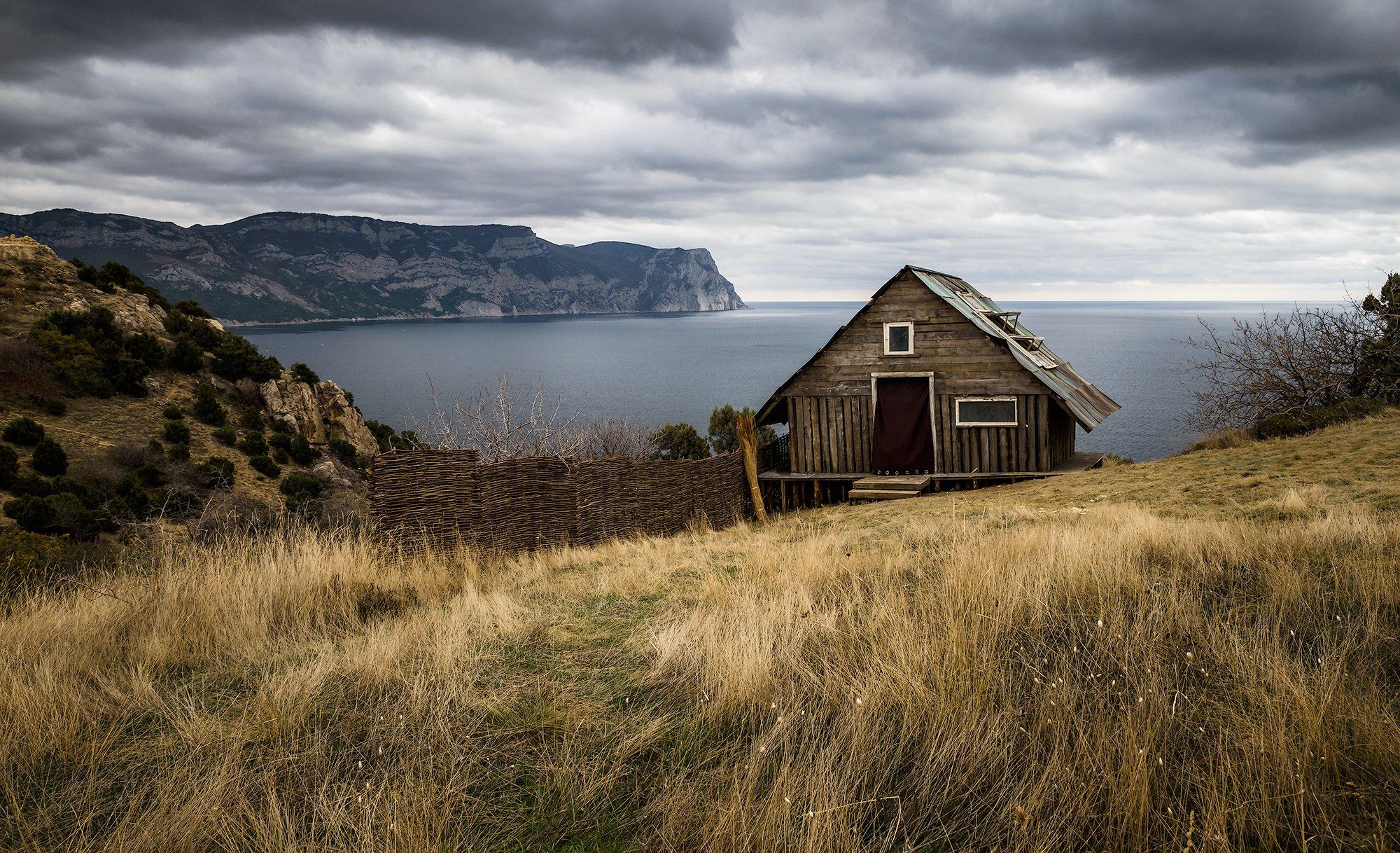 Крым, пейзаж, море, облака, небо, берег, горы, трава, осень, тучи, , Владимир Яковлев
