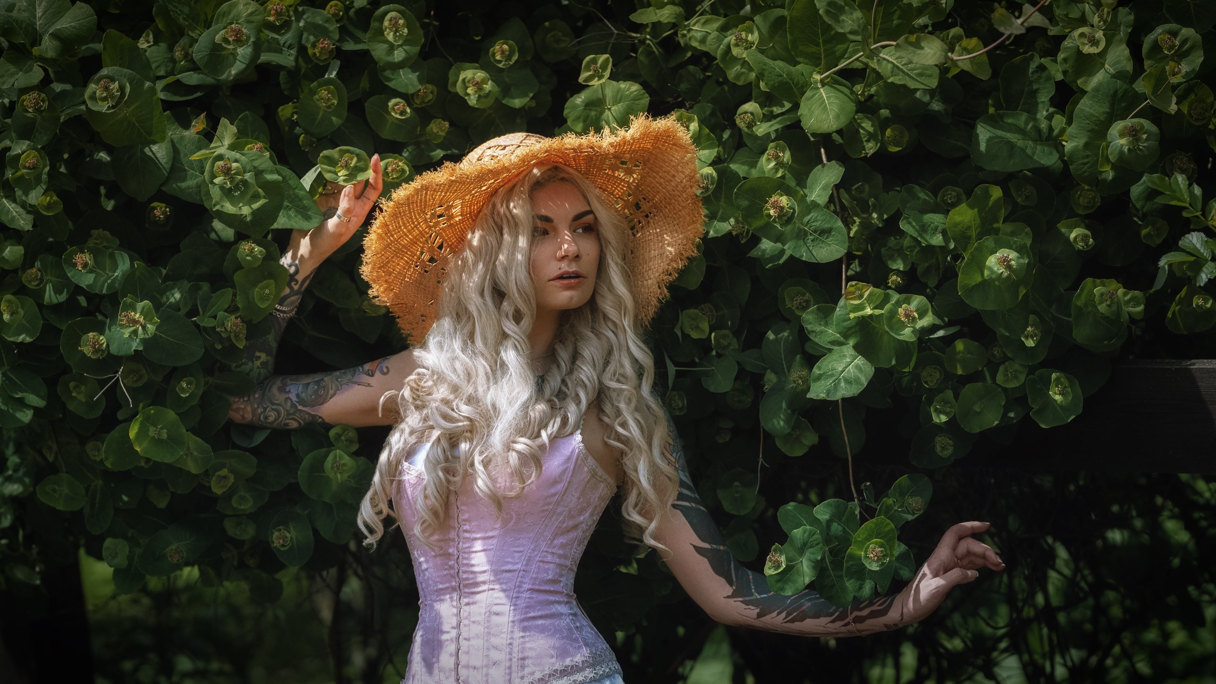 Девушка Лето Парк Красота Стиль Мода Тату Платье Шляпка Блондинка Нежность, Юрий Захаров