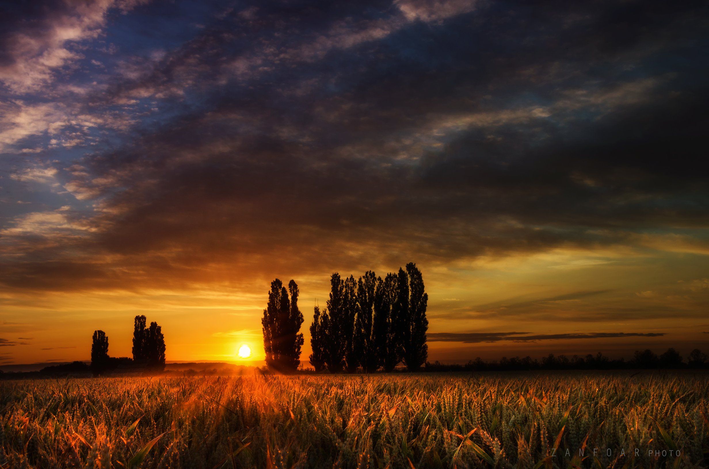 тополя, пейзаж, поле, природа, рассвет, зерно, лето, лучи, деревья, уши, zanfoar, чешская республика, nikon d7000,чехия, Zanfoar