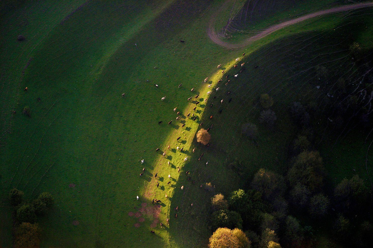 Необычный ракурс. Коровки как муравьи. Понравилось фото!