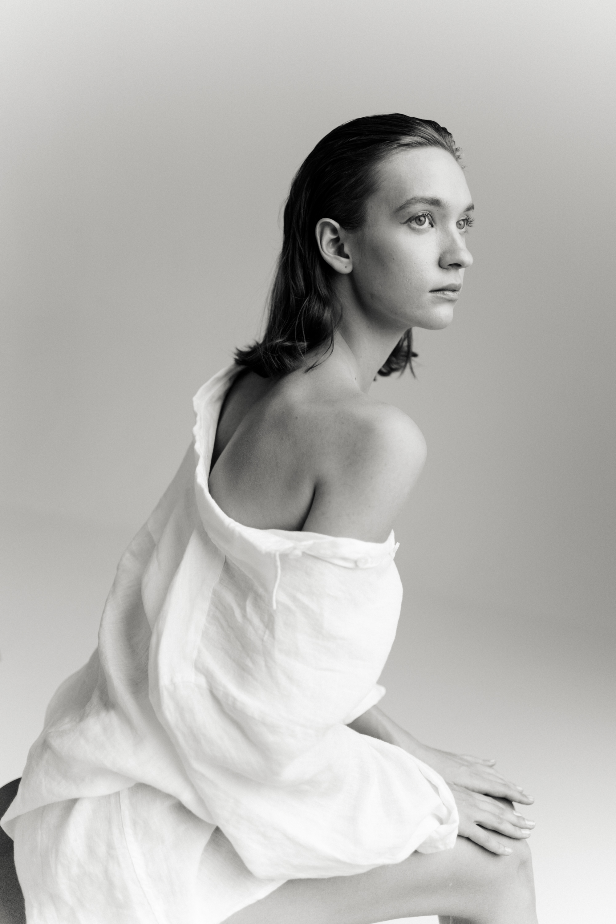 Свет, ткань, поза — чётко, сдержанно, выразительно.