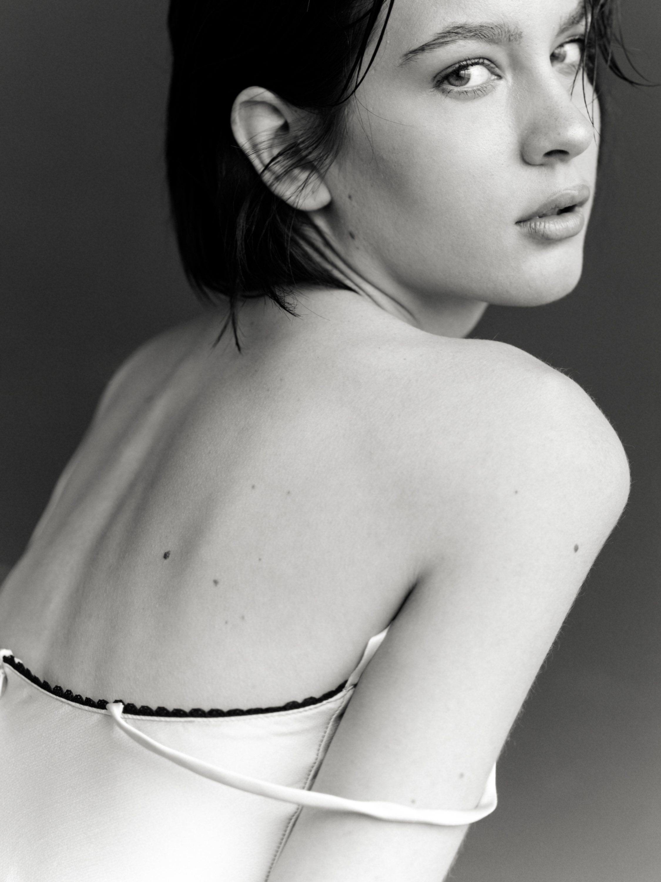 В этой работе фотограф Павел Зайков мастерски использует игру света и тени для создания выразительного образа. Черно-белая палитра подчеркивает текстуру кожи и линии тела, создавая ощущение чистоты и минимализма. Взгляд модели, направленный в сторону, добавляет снимку загадочности и глубины. Композиция кадра фокусируется на деталях, позволяя зрителю прочувствовать атмосферу момента.
