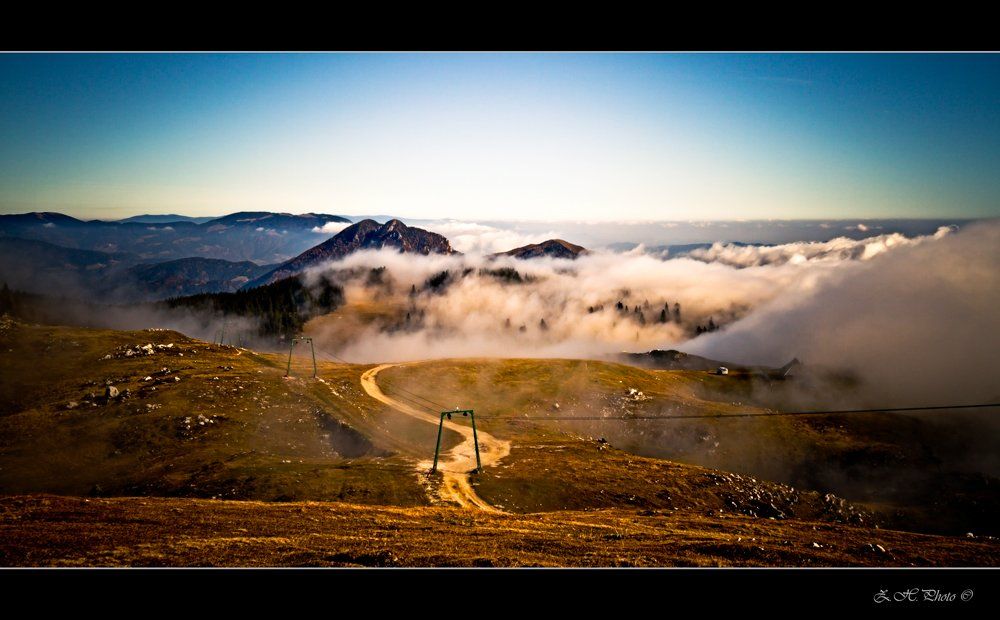 mountain, valley, fog, skyline, cable, car, velika, planina, slovenia, Zdravko