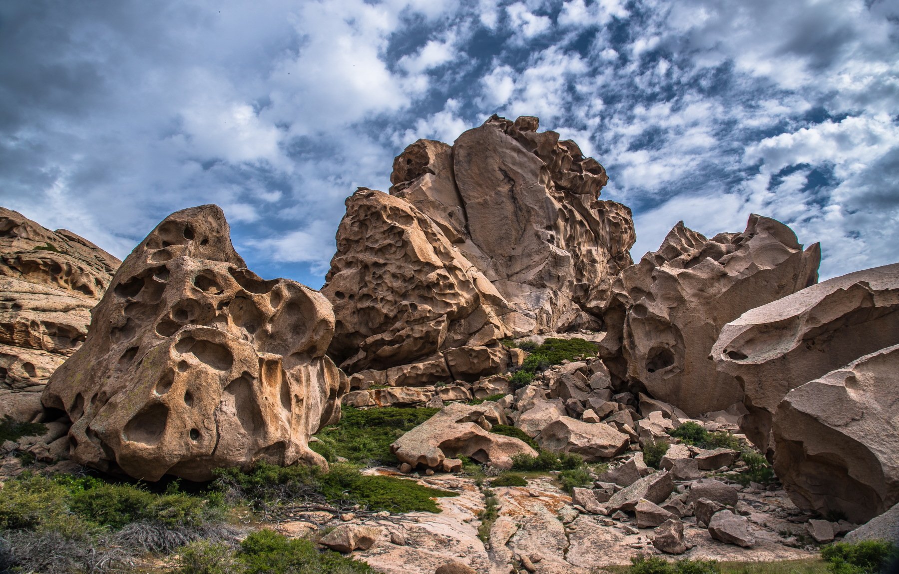 Гористая местность посреди казахстанской степи, радиусом около 5-7 км, с небольшими лесками. Резко отличается своей флорой от окружающей её степи. Выветренный массив этой гранитной интрузии, вышедший на поверхность после тектонического поднятия и эрозии окружавших его мягких пород. Самой высокой вершиной является гора Бектауата — 1214,3 м.
