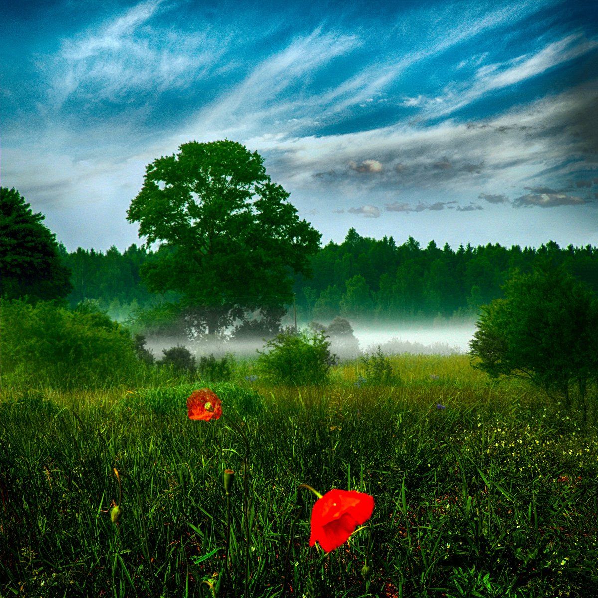 мак, туман, природа, поле, утро, Rimantas Petrikas