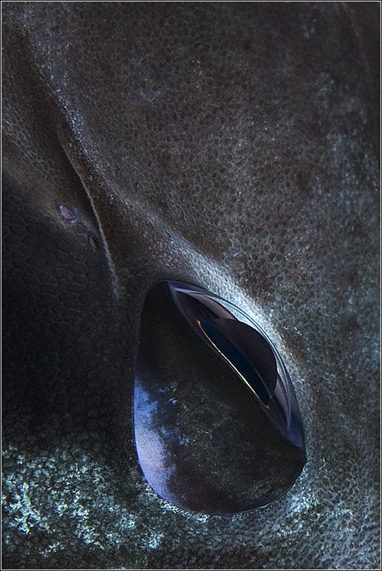сдаюсь...) мир подводных обитателей настолько разнообразен...Могу только предположить, что обладатель глаза, как мне кажется, больших размеров... Неужели - скат? :)