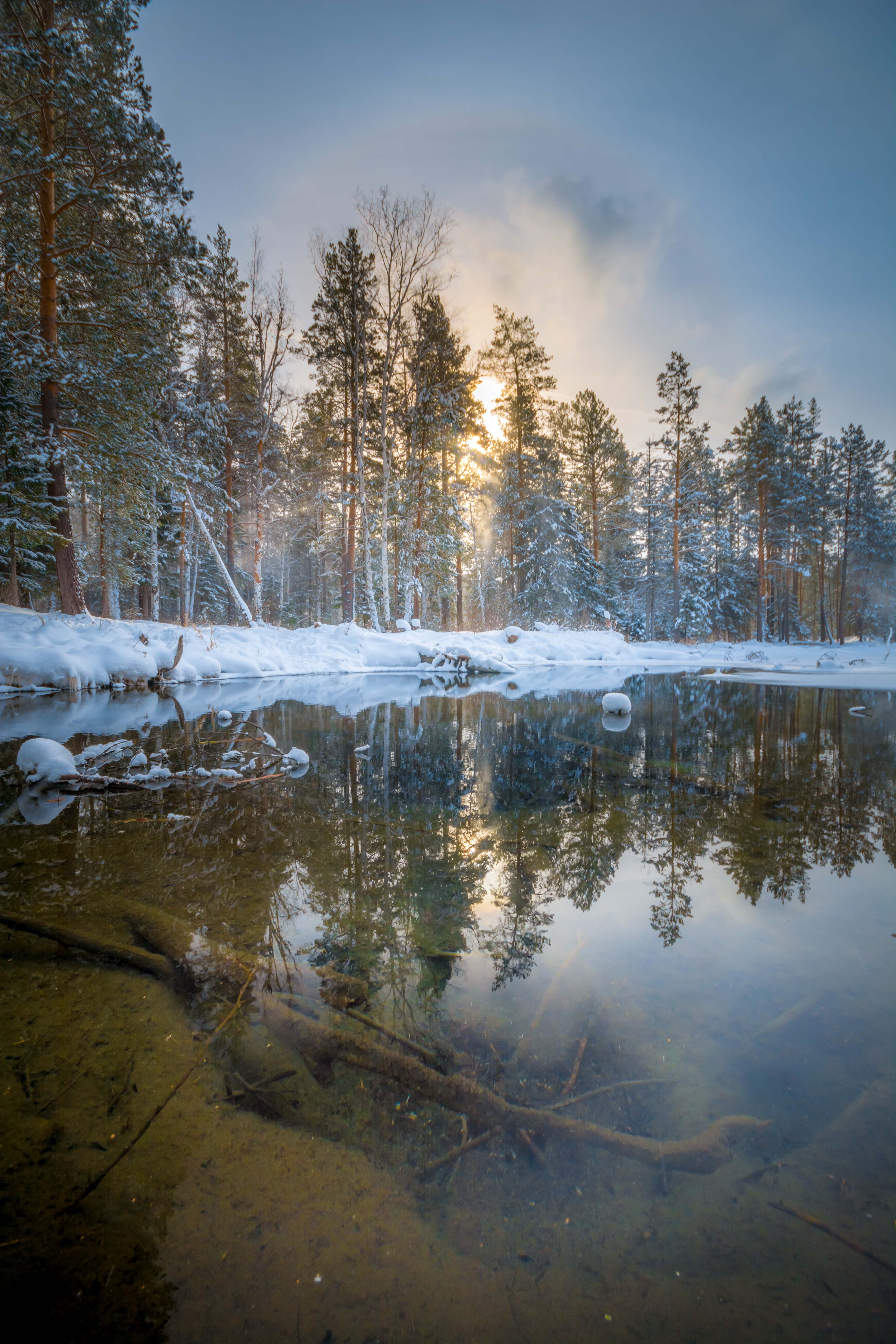 зима лес озеро солнце, Жданов Дмитрий