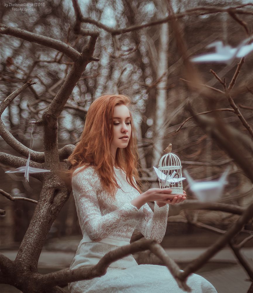 ДевушкаДеревоОригамиПортрет