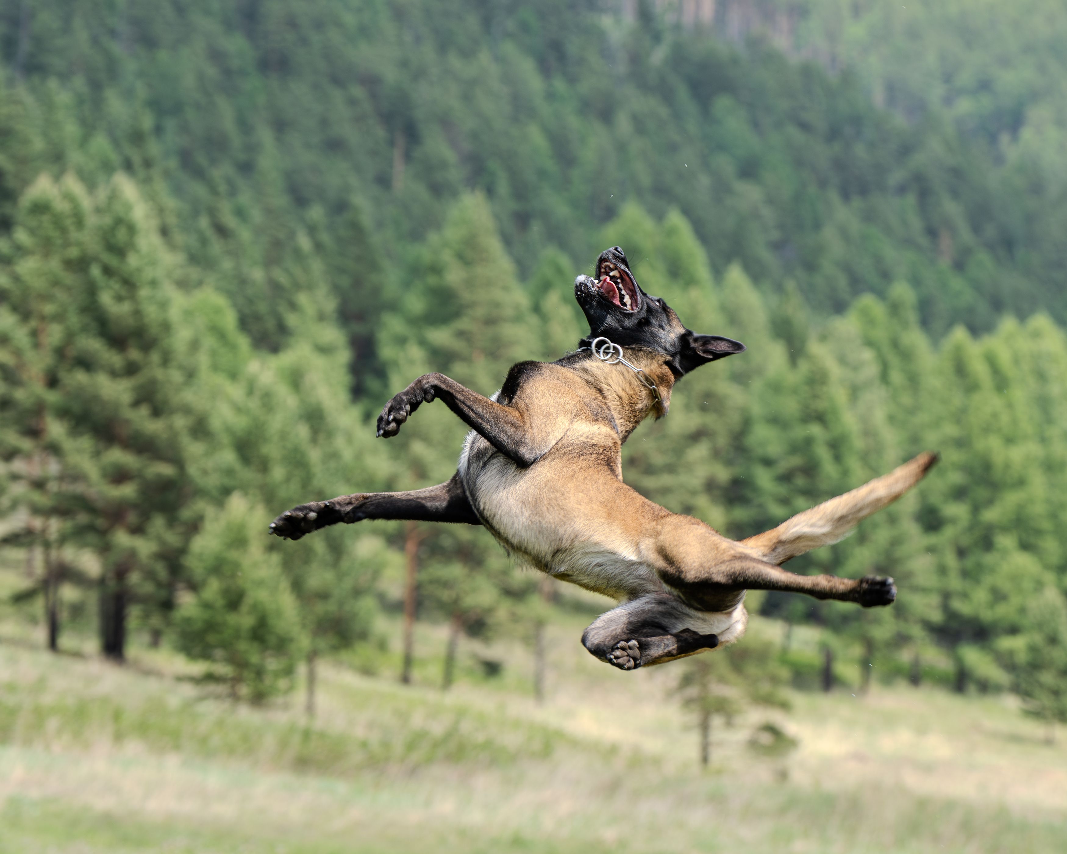 Свет равномерный, фон мягко размыт — собака в прыжке выделяется чётко, движение передано динамично 🐶. Вы, Сергей, могли бы рассказать, как удалось поймать этот кадр в момент?