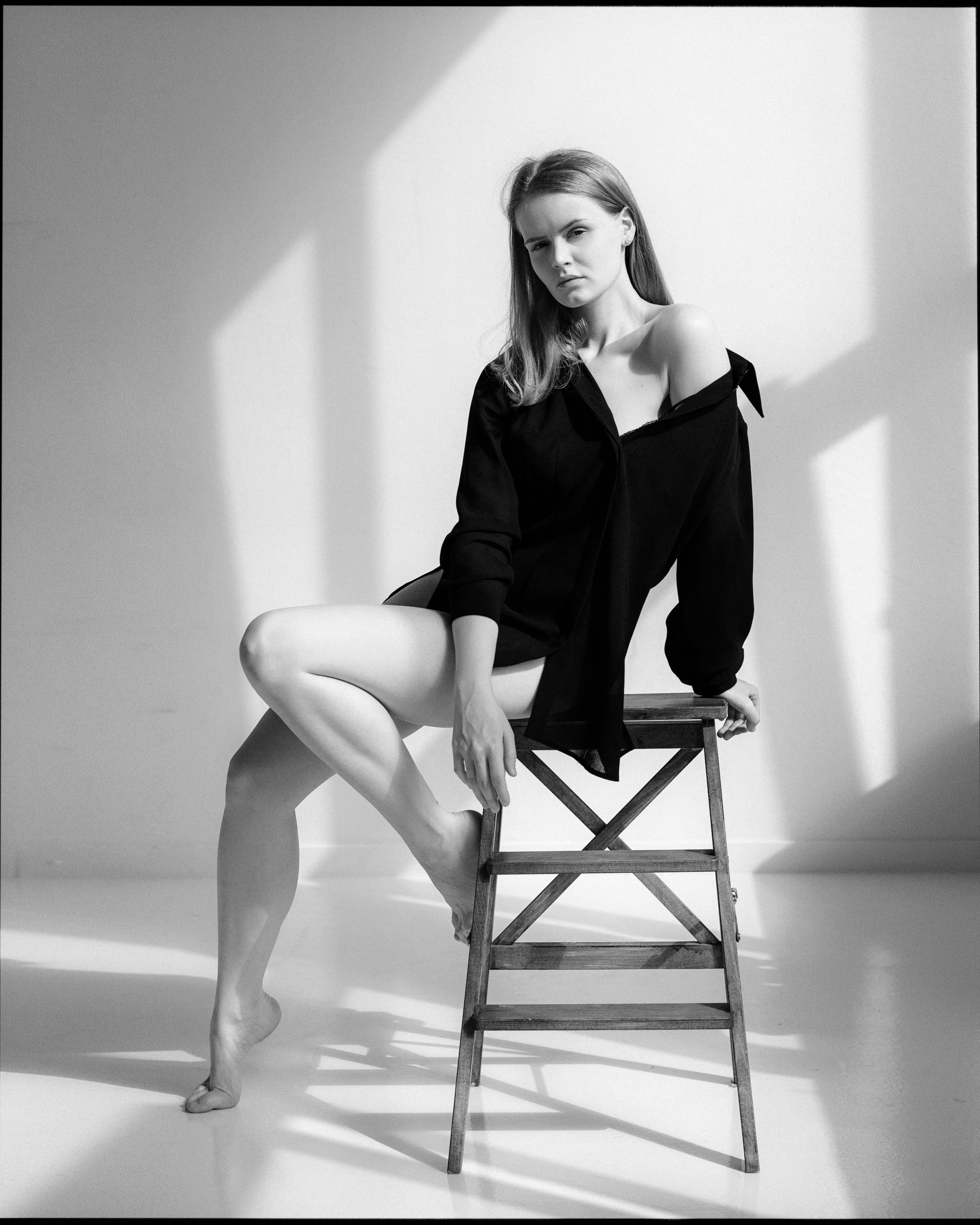 Лиза — сдержанно, но с чувством. Свет играет на теле, а поза — естественная, почти непринуждённая. Чёрно-белое решение подчёркивает формы и контрасты, а простота обстановки даёт акцент на модели. Вы, Андрей, умело выделили главное — без лишнего. 👌