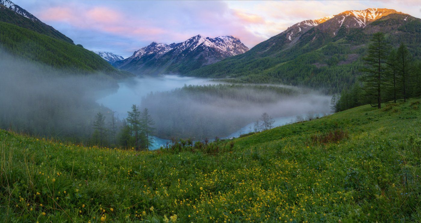 имхо, надо было чуть пониже спустится, чтоб озеро полностью открылось