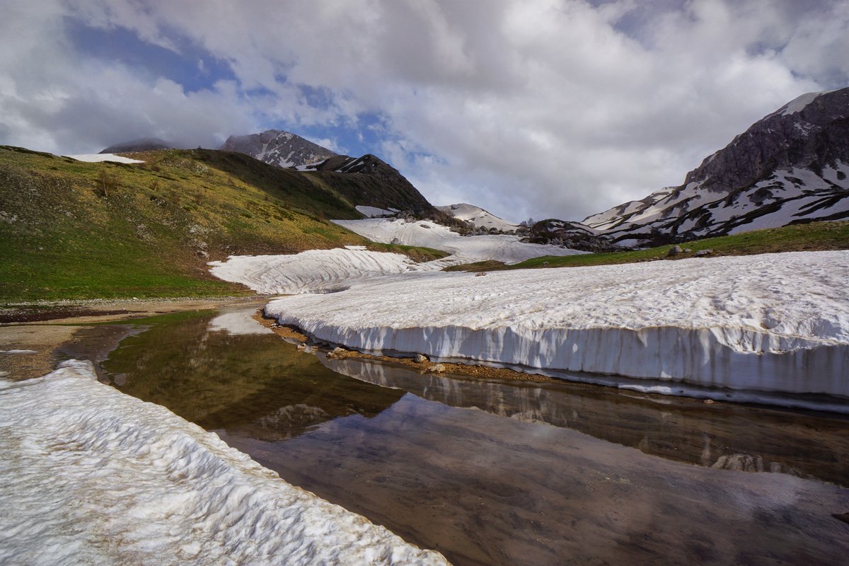 Псенодах - ледниково-карстовое озеро. Оно расположено к северу от Фишт-Оштеновского перевала. Озеро имеет вид полумесяца, обращенного выпуклой стороной на север. Его длина в лучшие времена составляла 165 м, наибольшая ширина 72 м, длина береговой линии 492 м. Площадь зеркала озерных вод - 9000 м2, а объем 3450 м3. Большая часть озера мелководна (глубина от 0,2 до 0,8 м). В последнее время озеро обмелело, возможно, вследствие увеличения воронки, через которое оно уходит под землю.