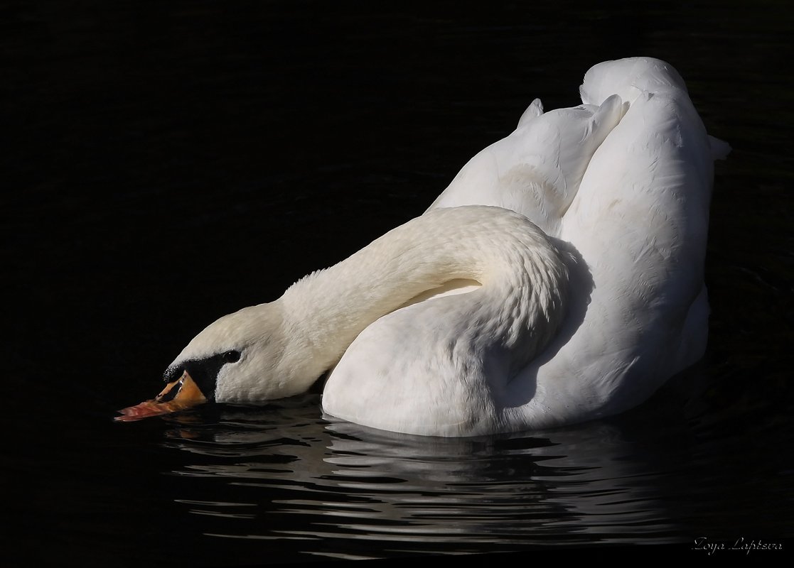 с музыкой лебедь оживает...