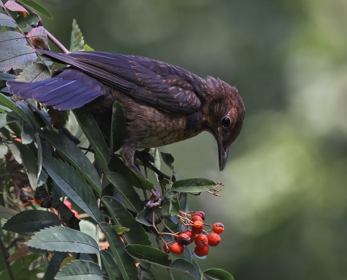 Нее...Пожиратель рябины другой, то дрозд-рябинник, а это черный дрозд, он питается различными насекомыми, земляными червями, семенами и ягодами. Но его любимое блюдо — земляные черви, а рябина на десерт.)