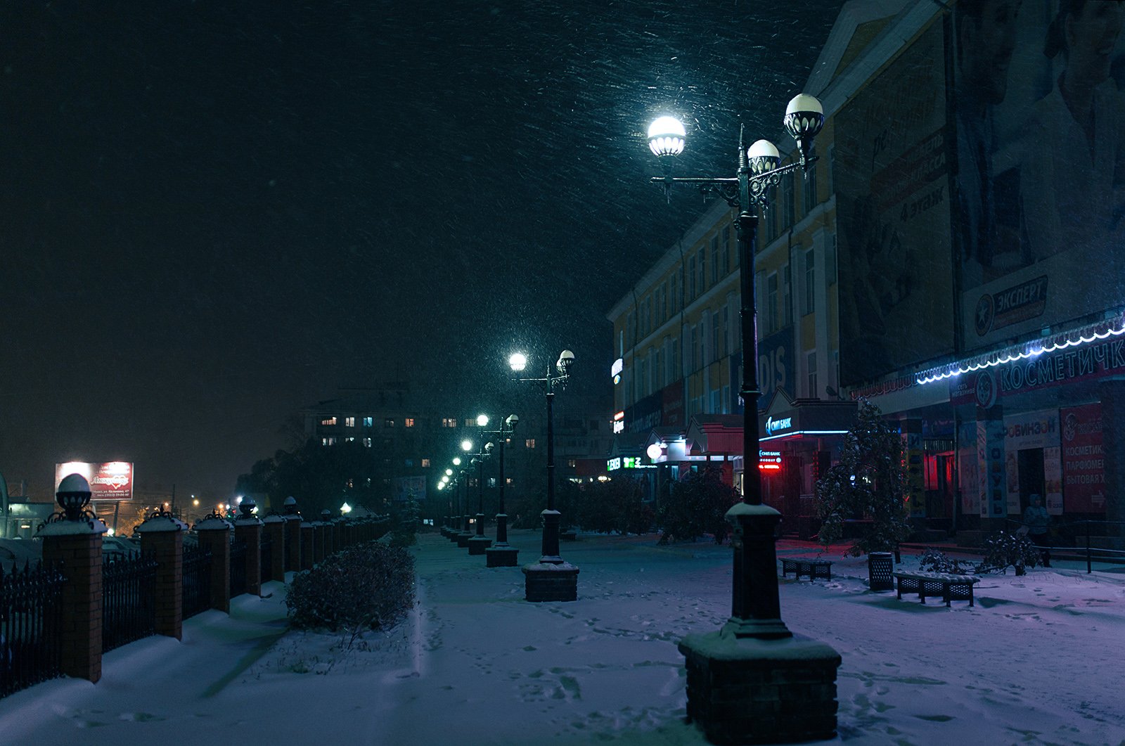 улица, город, фонари. снег, метель, Евгений Толкачёв