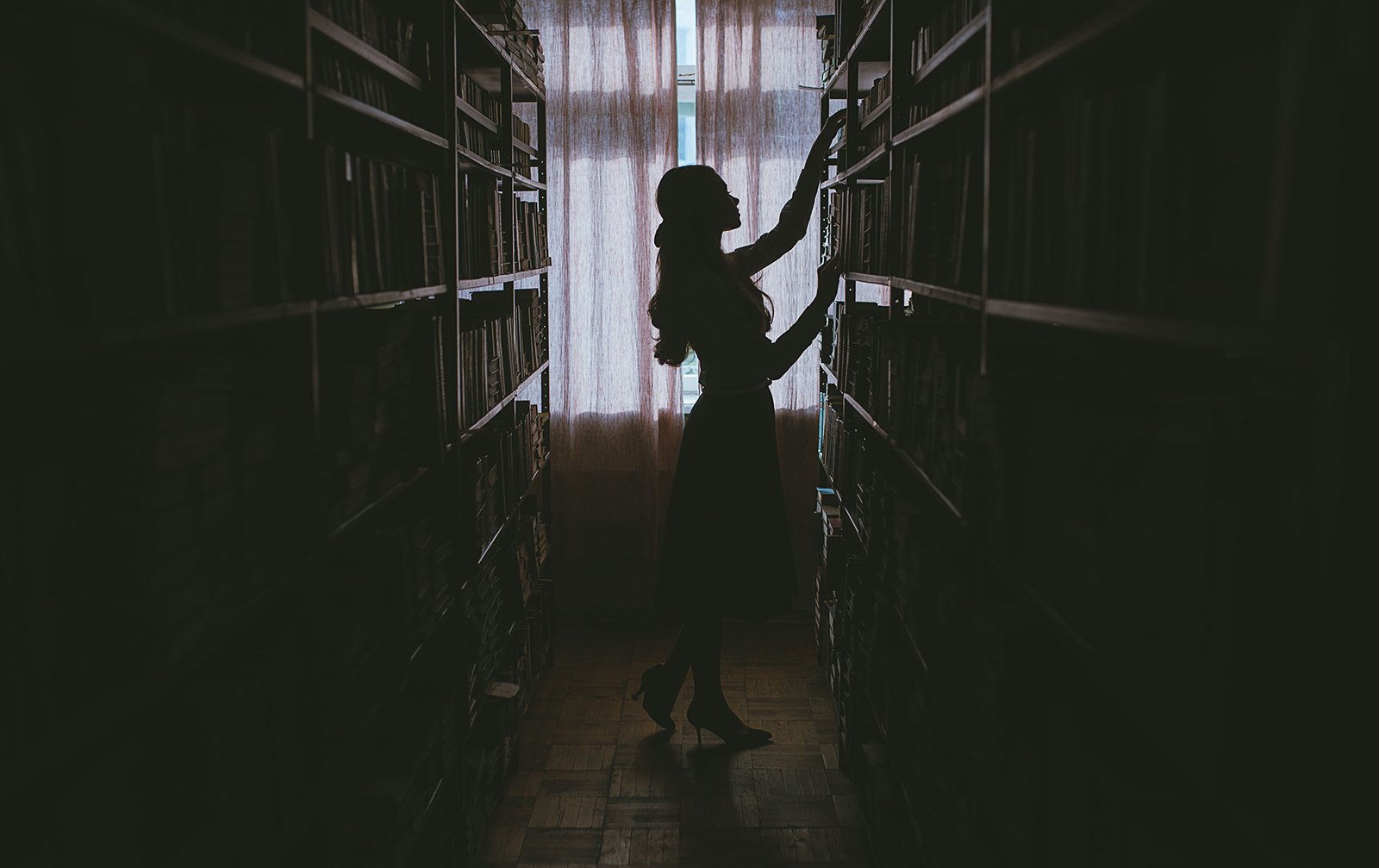 девушка, книги, библиотека, Евгений Толкачёв