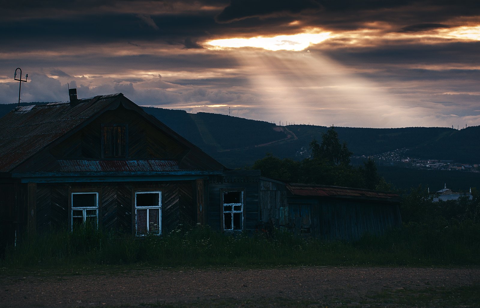 лето, закат, вечер, дом, небо, луч солнца, Евгений Толкачёв