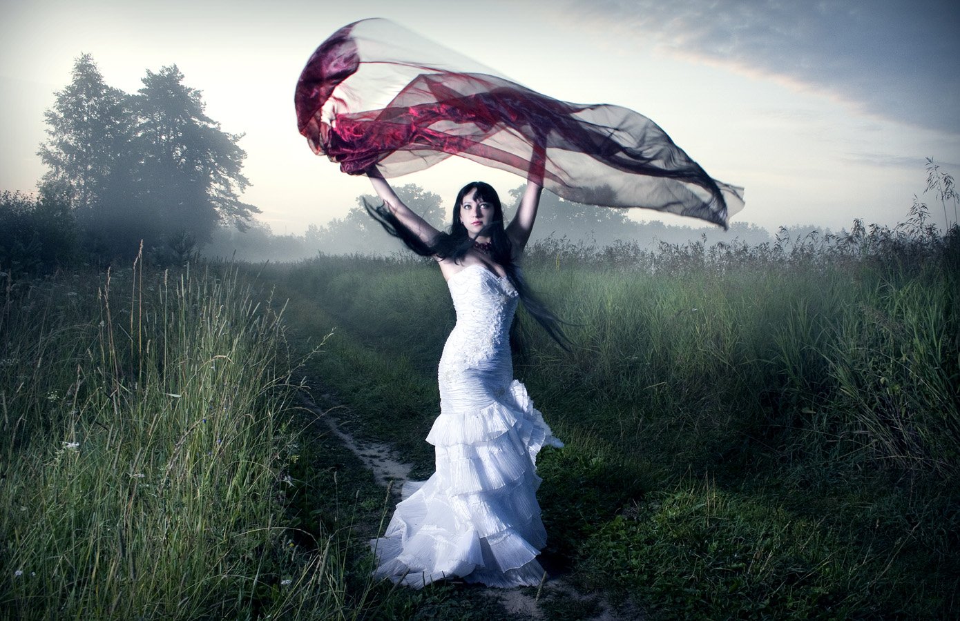 Зря Вы начинаете обращение со слова "не нравится") сразу хочется искать плохое в фото). Мое мнение, естественно субъективное, такое: многовато лишнего места по краям, можно кадрировать и сместить немного модель с центра кадра. жестковат свет вспышки, от этого глубокие тени с резкими переходами (левая рука модели, тень на земле, от носа..). Если по сюжету заклинания, то для этого не подходит свадебное платье. Взгляд модели ничего не выражает. Ну есть еще всякие мелочи. Но, есть большой плюс - Вы используете внешний свет, Вы стараетесь создать образ и т.д. Это значит, что с опытом качество работ будет однозначно повышаться. Удачи Вам!