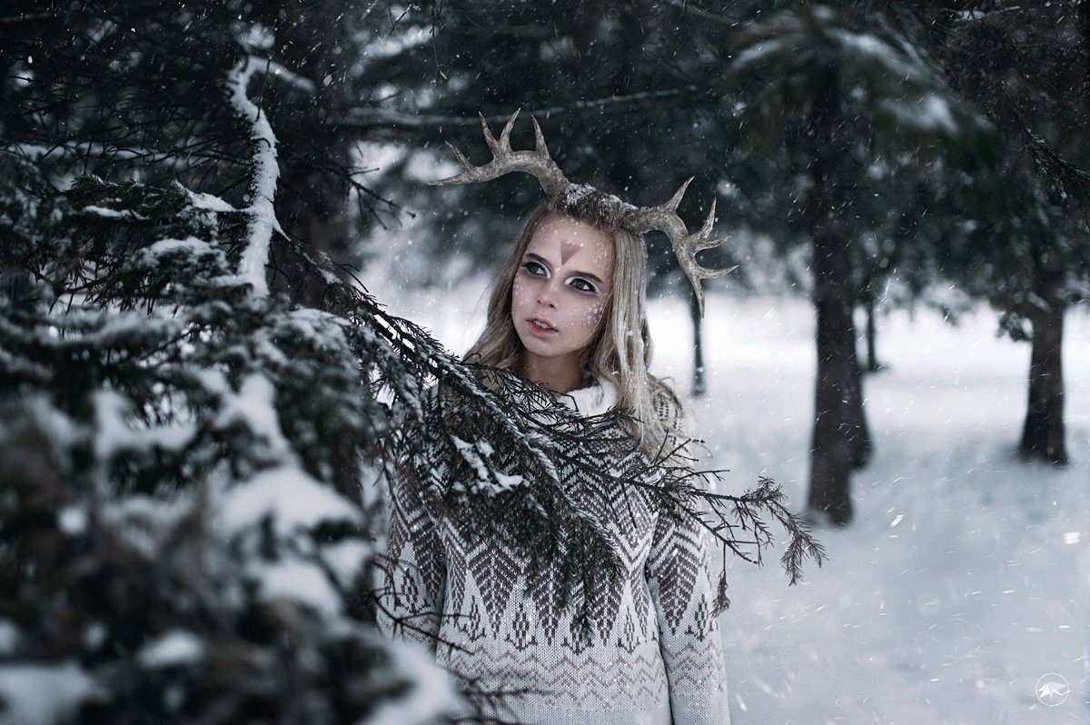 sigma, art, 1ds3, девушка, мороз, снег, ветви, деревья, ель, лес, сугробы, снежный, рога, макияж, сказка, Роман Золотой