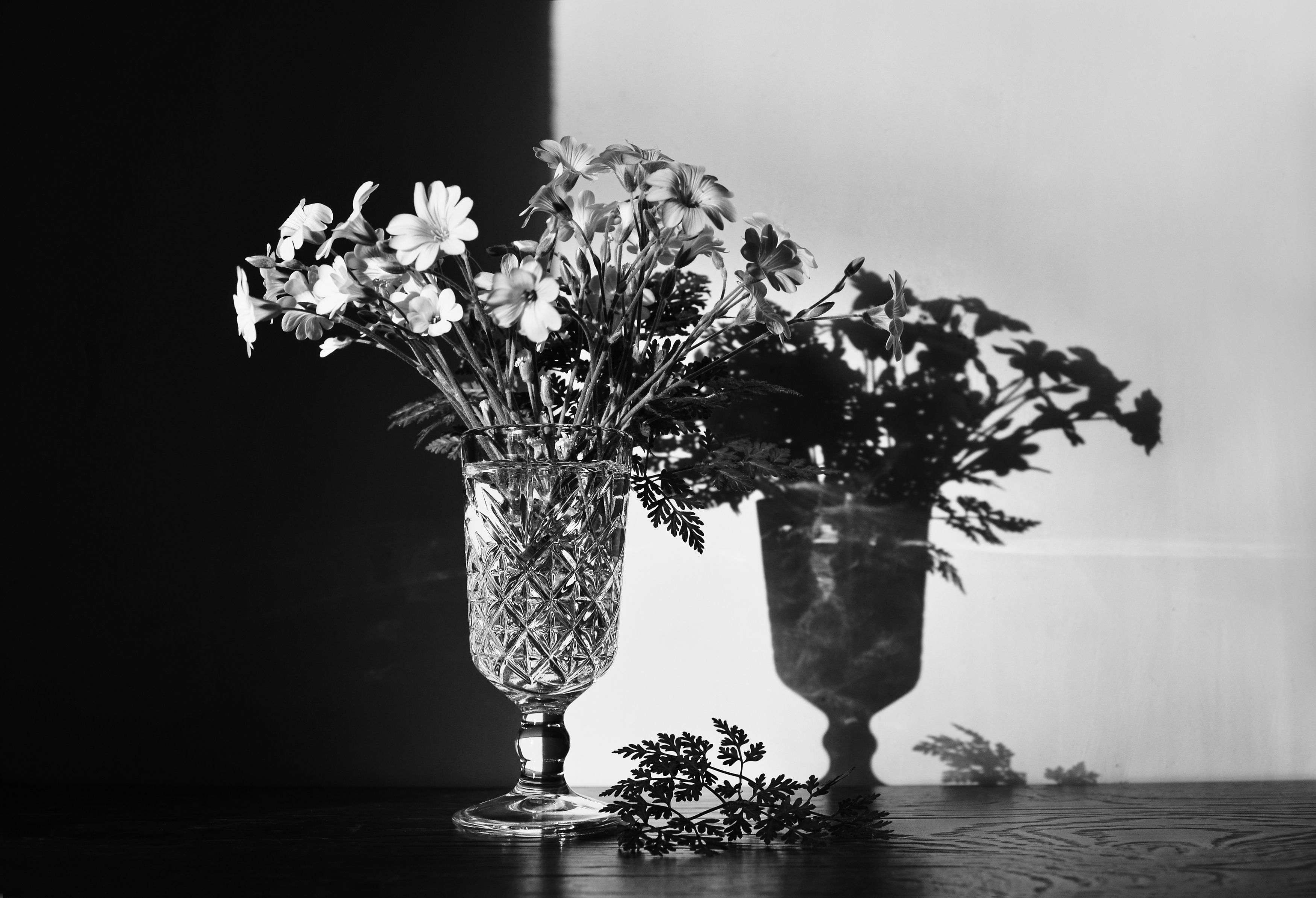 букет, натюрморт, чбфото, растения, стекло, Shadow Anna