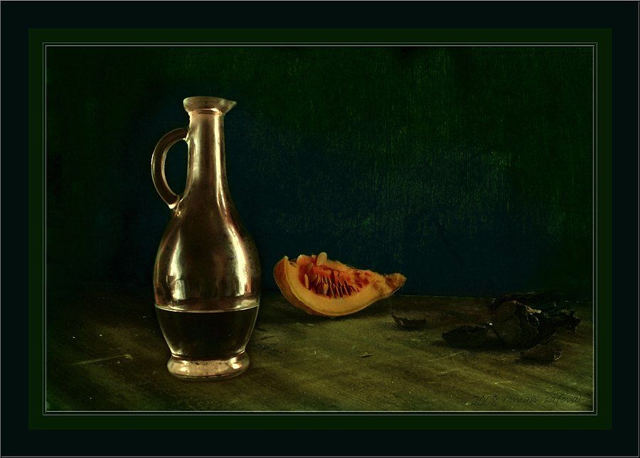 к советам всегда стОит прислушиваться, даже если Вам кажется, что Вы довольны результатом... позвольте мне высказать не критику, а свои ощущения от просмотра - мне показалось, что кувшин и тыква вшоплены... ИМХО