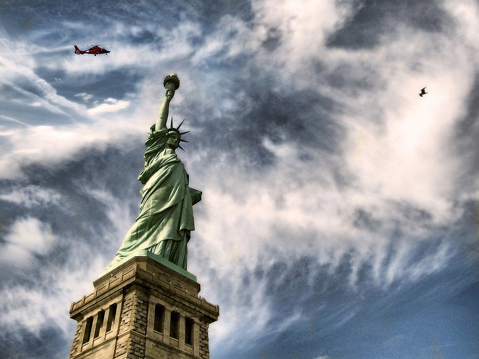 Отличное фото..ощущение, что океан над статуей, а не небо!И вертолет дополняет с птицей)