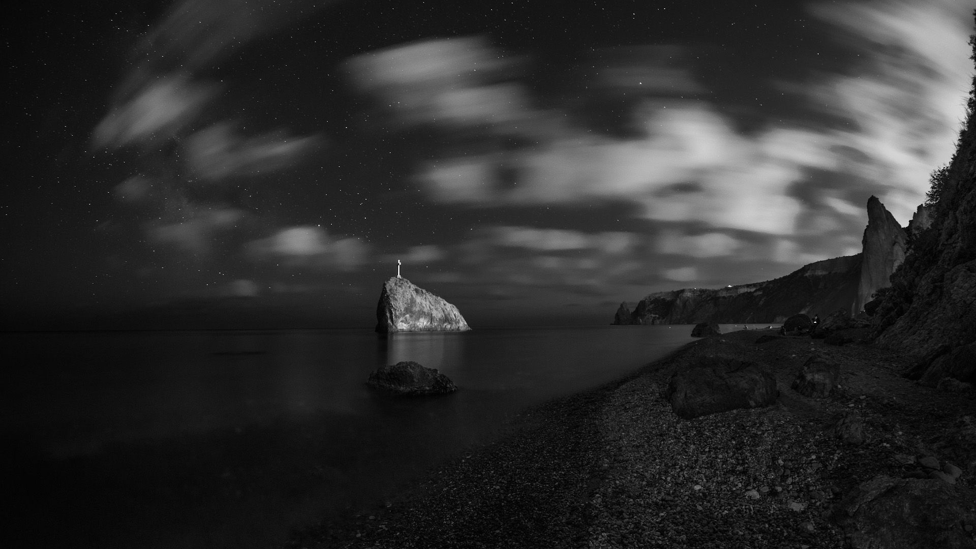 ночь пейзаж крым севастополь фиолент фишай монохром , Котенко Вадим